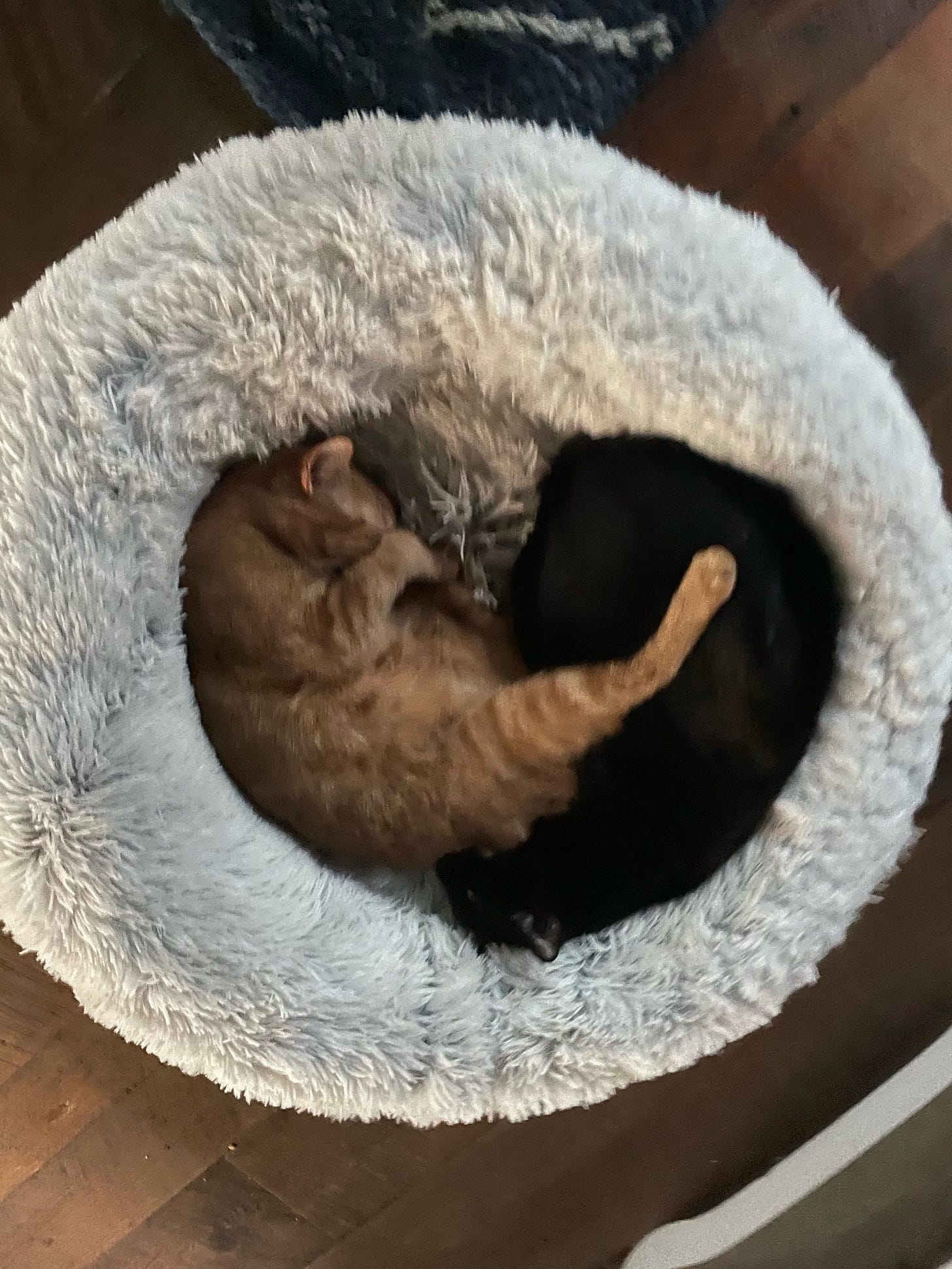 Thank you to reader Alicia for sending in today’s featured photo of Garfield and Lewis, who were rescued with the help of PS9 Pets in Williamsburg. I always seem to comment on how cozy pets look in these photos, especially in they’re taking napping. Maybe I should nap more often? Maybe we all should.